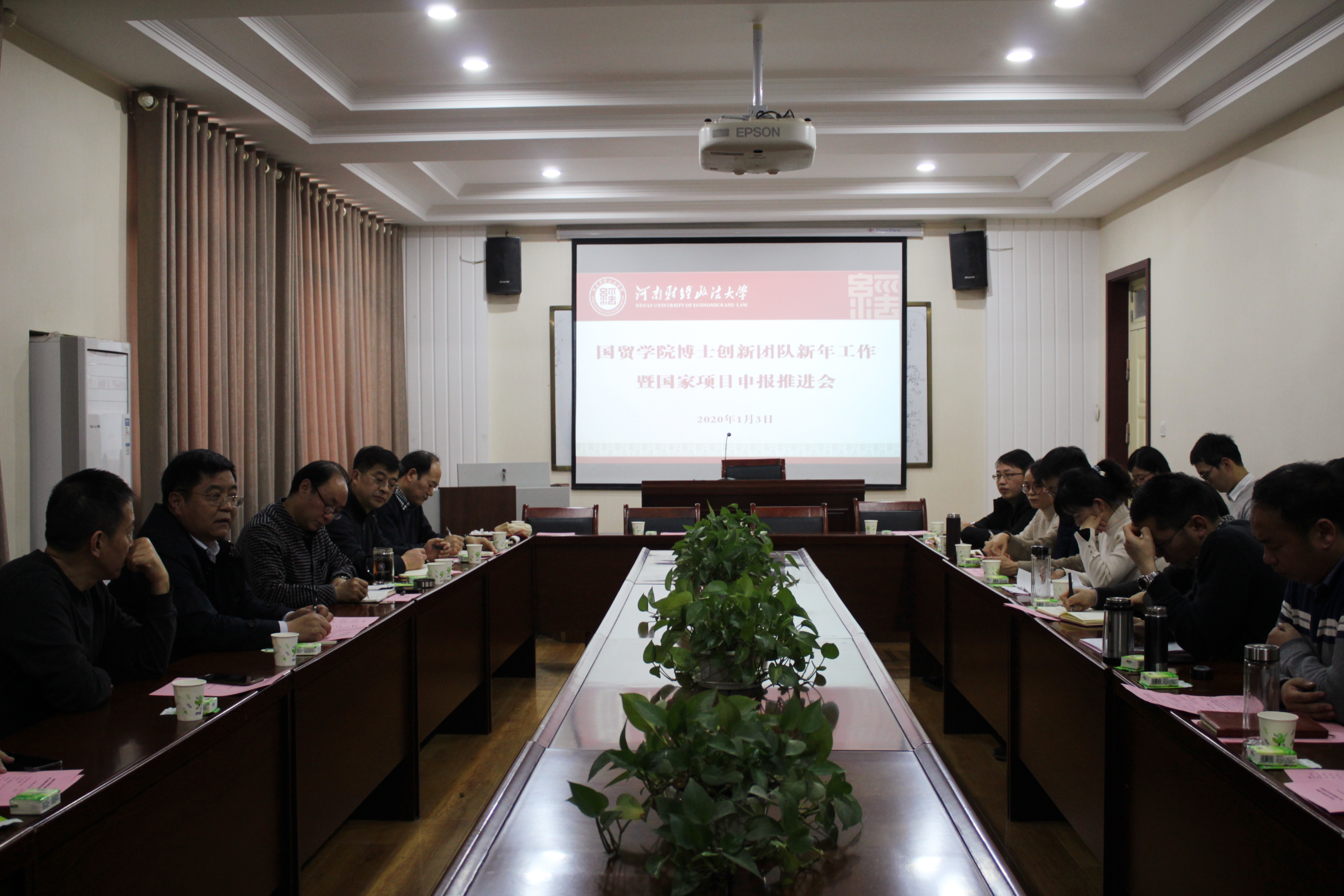 1月3日下午,高新才校长莅临我院,在建树楼603教室参加国贸学院博士创新团队新年工作暨国家项目申报推进会,并对我院学科建设、教育教学工作进行指导。会议由硕士生导师韩亚峰副教授主持,国贸学院院长张占东教授、博士创新团队全体教师、18级研究生等30余人参加。